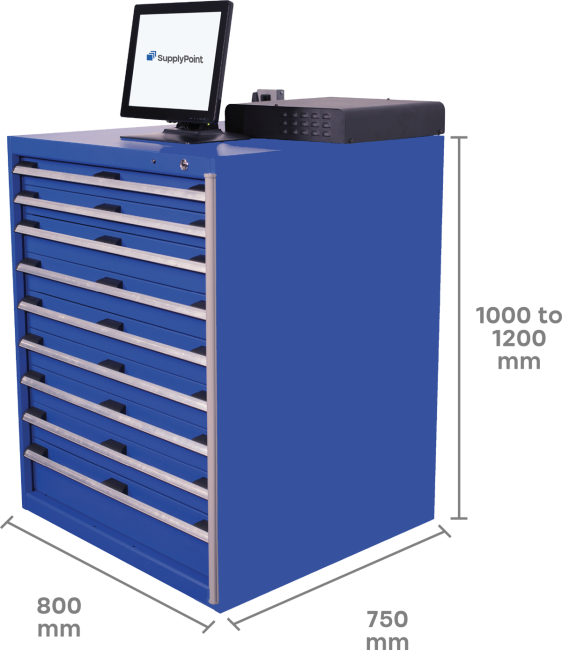 Rapid search and selection of the items via the SupplyPoint software is further enhanced with an LED identification system which guides the users to the correct drawer location.